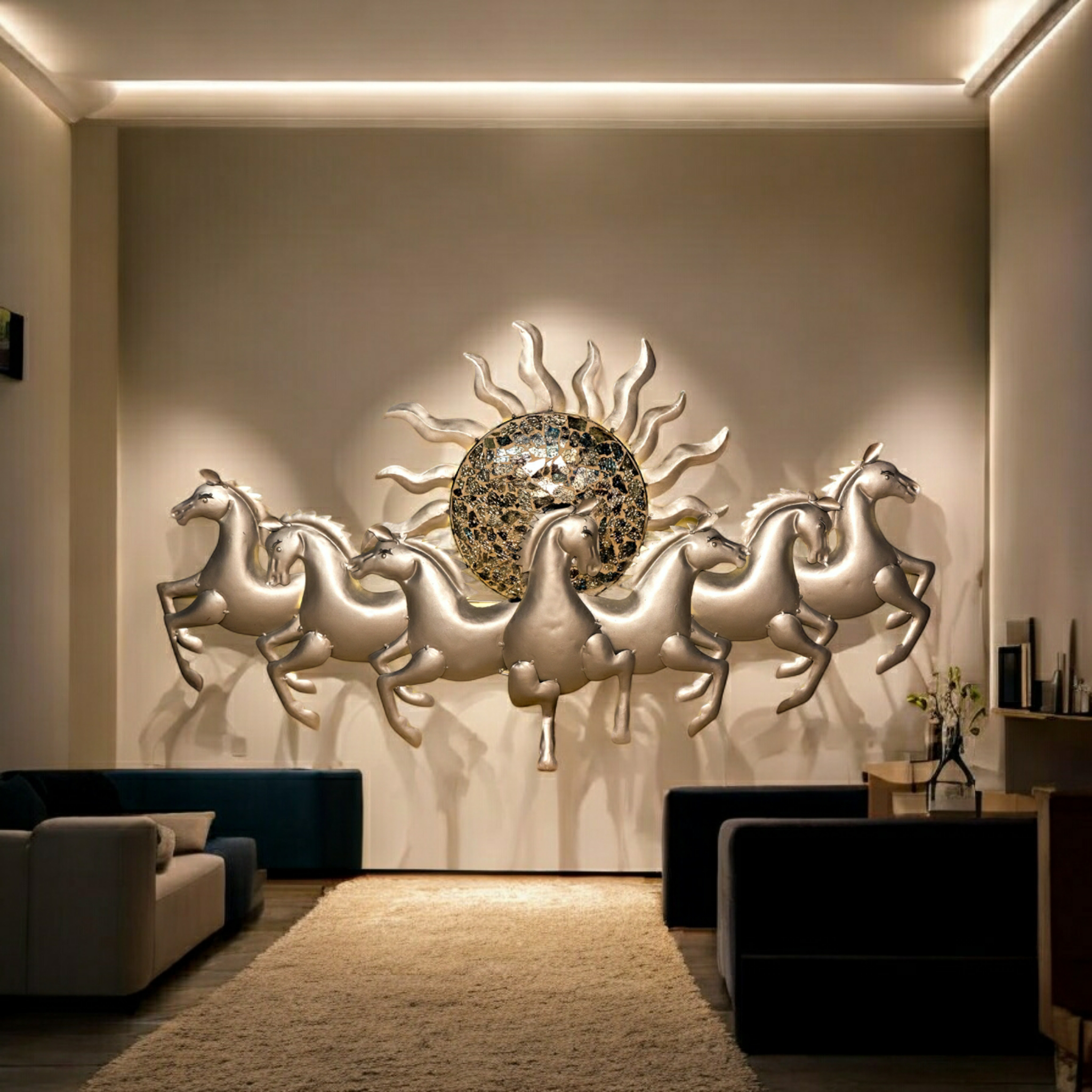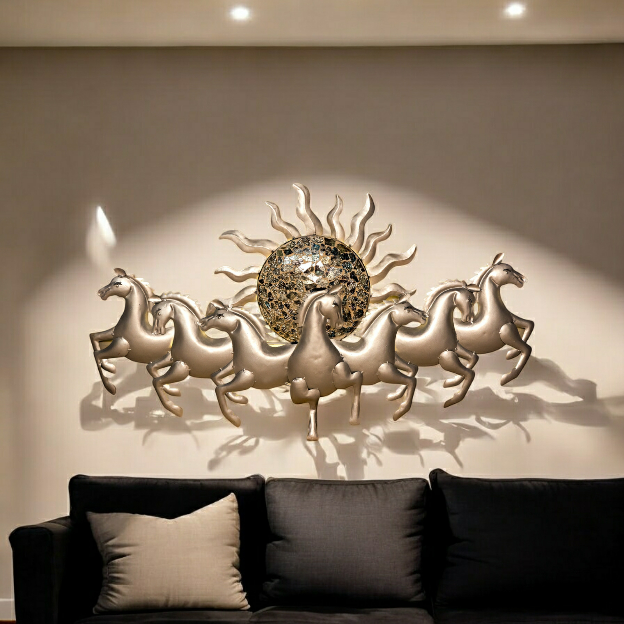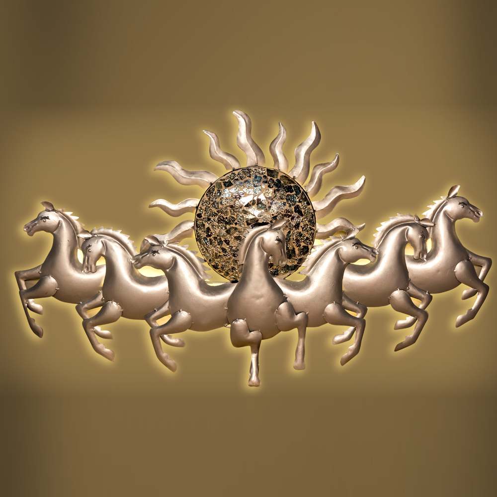 "Foresto Sun 7 Horse Iron Wall Hanging With Led