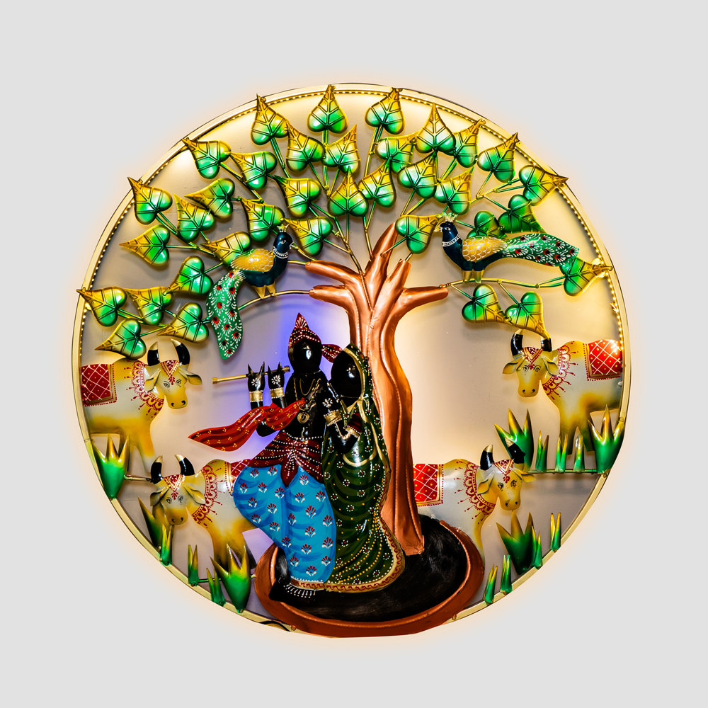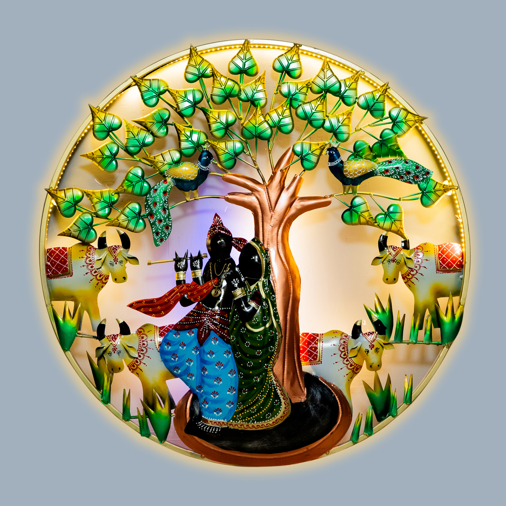"Iron Lord Shree Krishna With Radha Wall Hanging With Led