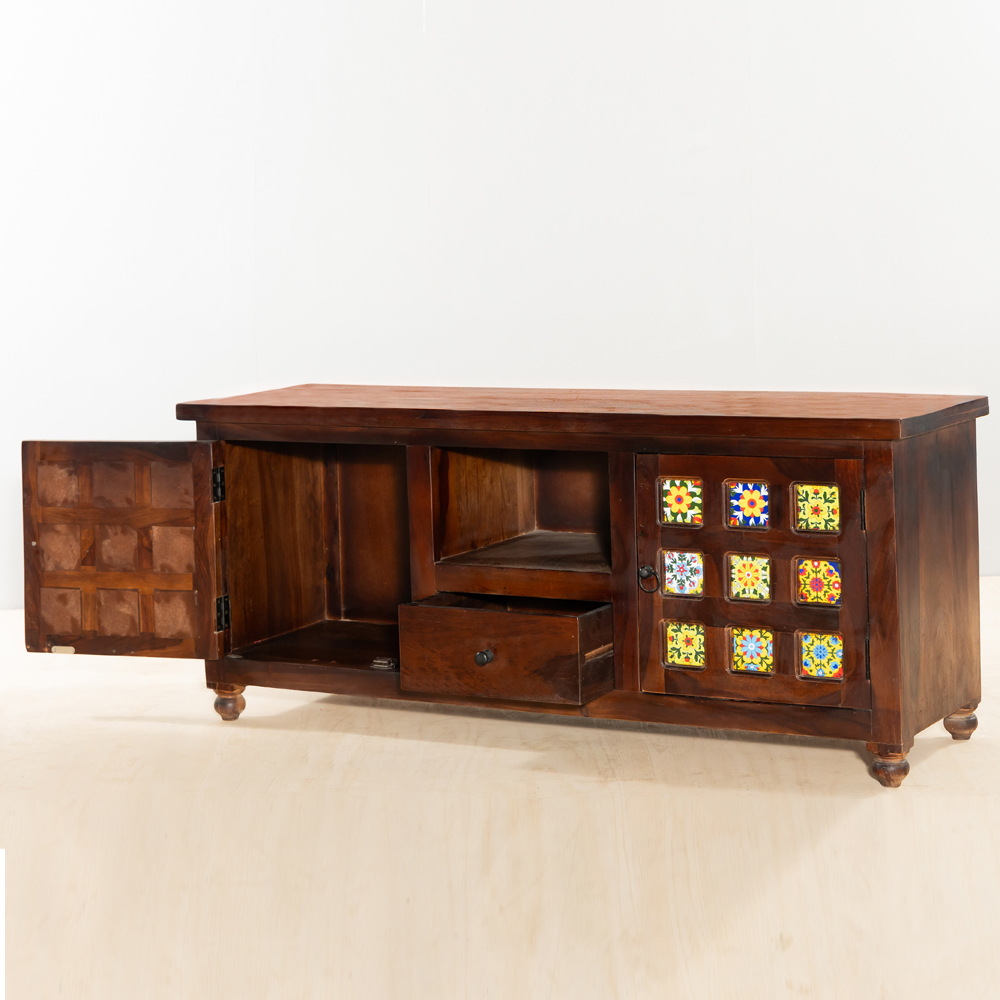 "Vinto Sheesham Wood Tile Tv Cabinet