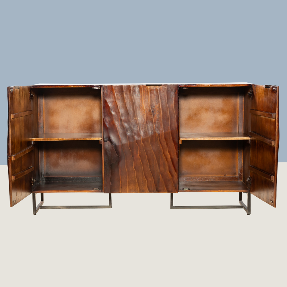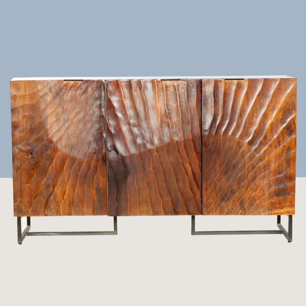 "Wavvy Carved Wooden Sideboard